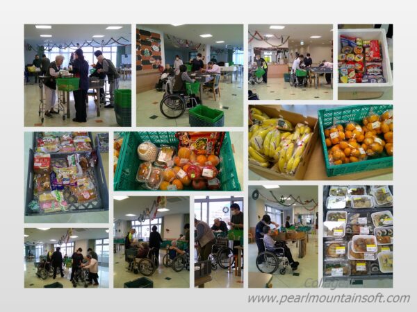 今月2回目となる移動販売・まごころサポート様が来てくださり、入所の皆さんが利用させていただきました。お菓子におせんべい、パン、お惣菜、果物、カップ麺、ヨーグルトなどなど…いろいろな商品をお持ちいただきました。たくさんの商品があり、好きなものをご自分で選ばれ、大変喜んで頂きました(*^^*)